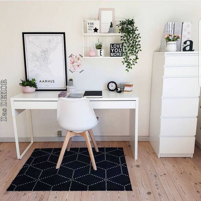 White wallpaper with no composition or effects is not an option for a home workspace, as it makes the room feel empty, cold, and needs some pampering.